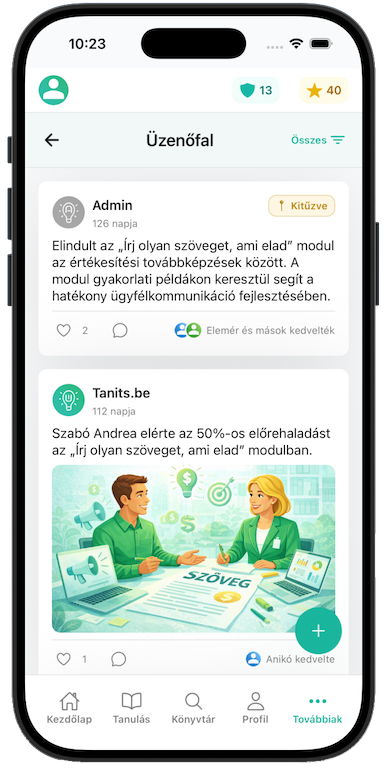 A beépített üzenőfal lehetőséget ad tapasztalatok és visszajelzések megosztására.